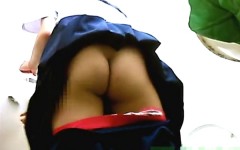 店内ですれ違いざまに逆さ撮り食い込みパンティー