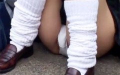 【JKパンチラ盗撮動画】布部分が小さくてマンチラしながら座り込んでる女子校生を接写で隠し撮りww