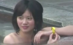 【露天風呂盗撮動画】メガネをかけた近眼少女が母親と話しながら温泉に入る様子を隠し撮りww