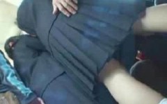 電車の中で友達とお喋りしてたら痴漢にお尻を触られて怯えちゃう女子校生を盗撮w