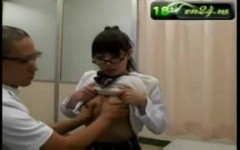 【盗撮動画】巨乳制服眼鏡JKが診療で医者におっぱいとおまんこほぐされちゃう