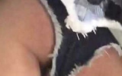 パンツ片足にかけたまま嬉しそうにしゃぶる制服彼女