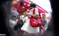 人混みの中で◯学生みたいな童顔少女のミニスカの中を逆さ撮り…
