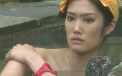【露天風呂盗撮】ピンク乳首の人妻が入浴する様子