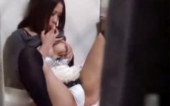 【洋式トイレ盗撮】カフェでお勉強中JK、トイレでオナニーする