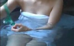 混浴の露天風呂でおじさんのチンポをチラチラ見てる女の子wwwww