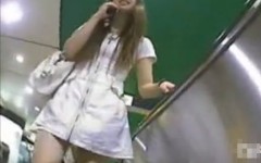 【盗撮動画】エスカレーターで前方に回り込んで絶景アングルで撮影された美脚ギャルのパンチラが格別w