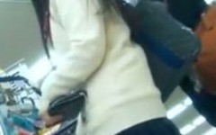 店内ですれ違いざまに逆さ撮り食い込みパンティー