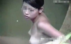 【露天風呂盗撮】ピンク乳首の人妻が入浴する様子