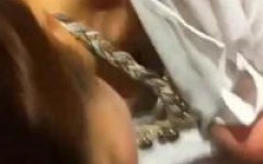 パンツ片足にかけたまま嬉しそうにしゃぶる制服彼女
