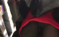 買い物中にパンチラ盗撮!黒パンスト越しでも白パンツだとはっきり見えちゃう