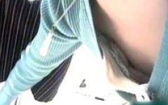 店内ですれ違いざまに逆さ撮り食い込みパンティー