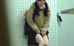 【洋式トイレ盗撮】カフェでお勉強中JK、トイレでオナニーする