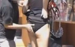 店内ですれ違いざまに逆さ撮り食い込みパンティー