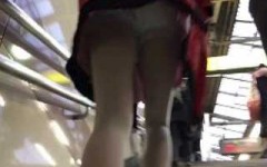 店内ですれ違いざまに逆さ撮り食い込みパンティー