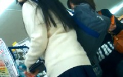 店内ですれ違いざまに逆さ撮り食い込みパンティー