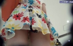 店内ですれ違いざまに逆さ撮り食い込みパンティー