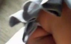 パンツ片足にかけたまま嬉しそうにしゃぶる制服彼女