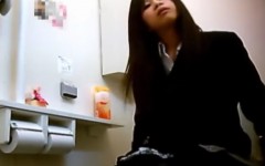 【洋式トイレ盗撮】カフェでお勉強中JK、トイレでオナニーする