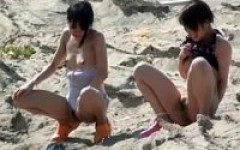 某海岸には我慢できなくなった水着の女の子たちがおしっこしにくるスポットがあると聞いて、