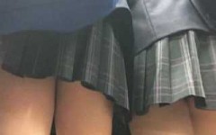 手を繋いで歩く超ミニスカ娘をまとめて逆さ撮り!仲良く食い込みパンティー