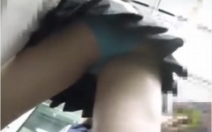 電車通学中のJKパンチラ逆さ撮り!ブルーのパンティ