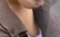 【胸チラ隠撮】携帯に夢中になるお姉さんは胸元がガバガバノーマーク!プクッと勃起した乳首ががっつり丸見えww