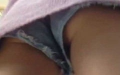 店内パンチラ盗撮!短パンで油断してると隙間からはみ出てるパンツを狙われる
