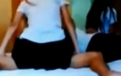 パンツ片足にかけたまま嬉しそうにしゃぶる制服彼女