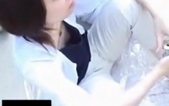 【盗撮動画】橋の下でイチャイチャしてパンティー丸出しで手マンされちゃってる素人JKカップル発見したんで向こう岸からズーム盗撮!w