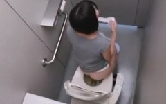 【洋式トイレ盗撮】カフェでお勉強中JK、トイレでオナニーする