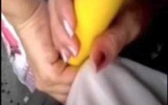 バスで手すりを握る手に押しつける痴漢!さりげなく親指で亀頭を擦ってくれる
