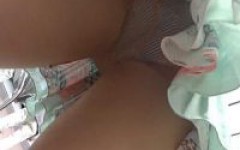店内ですれ違いざまに逆さ撮り食い込みパンティー