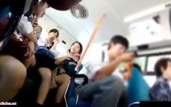 通学途中のバスに乗る制服JKたちを高画質カメラでパンチラ盗撮!