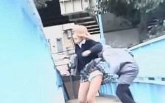 高架下で高校生カップルが友達に見張りをさせて性行