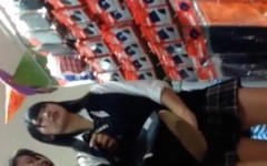 店内ですれ違いざまに逆さ撮り食い込みパンティー